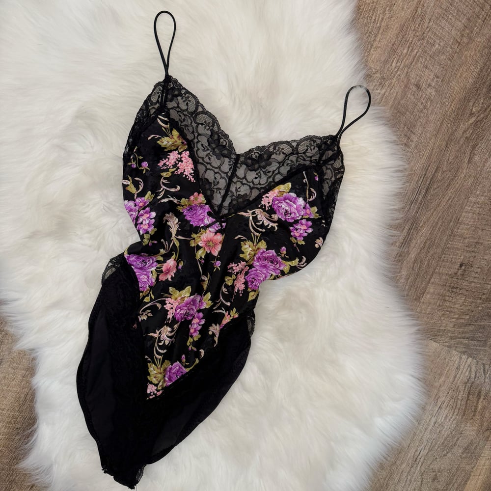 Vintage 1980's Floral Satin Bodysuit/Teddy - Size S