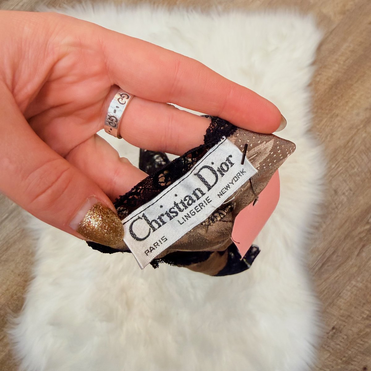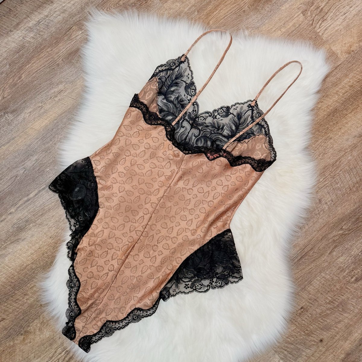 excellent condition vintage Dior printed beige satin teddy