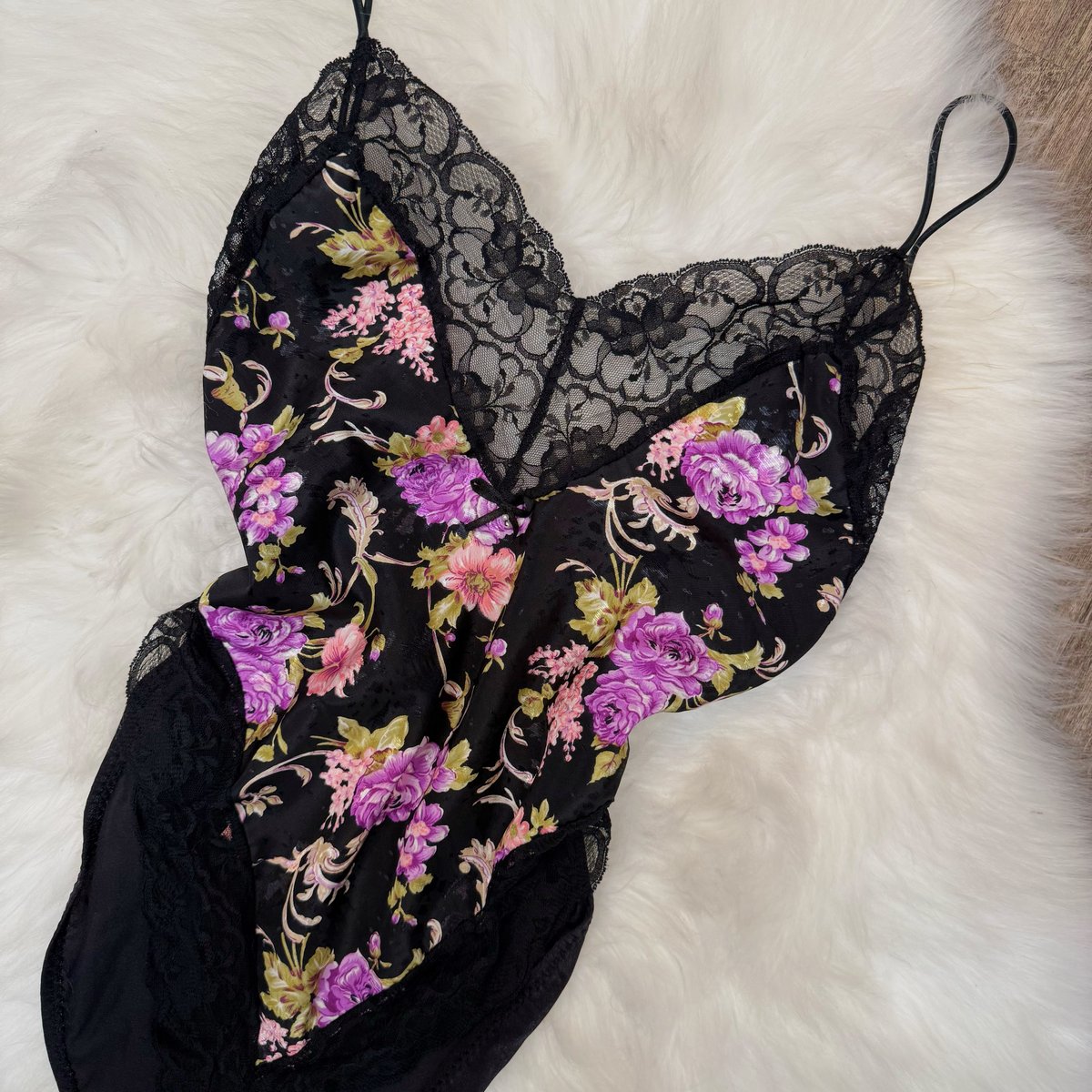 excellent condition 1980's floral printed satin teddy